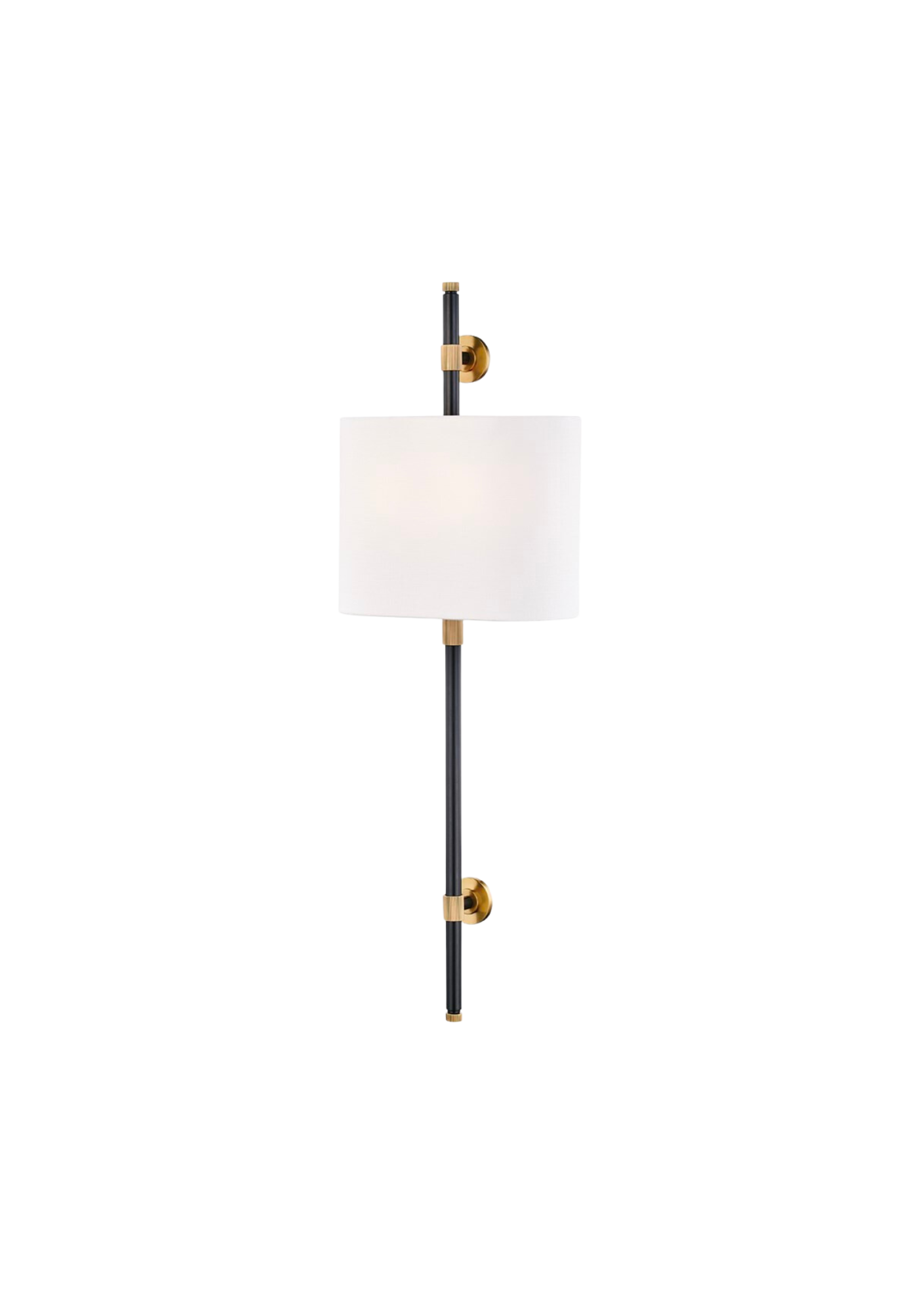 The Hopeton Sconce combines luxury and style in one statement piece. Finished in aged old bronze with a sleek tall design and unique height of 34", this sconce will look like a perfect fit for any room. The off-white linen shade adds an inviting ambiance while providing a warm and inviting light. Upgrade your space and add a touch of elegance today!