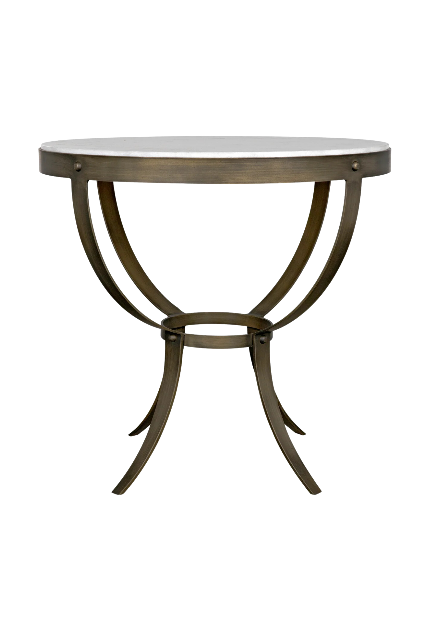 The beloved Ryan is now available in a light and dark finish, offering endless versatility as side, bistro, or nightstand tables. Each marble stone is distinctive in color, pattern, texture, and veining; while metal items boast a rustic palette with welding marks, spotting, and variances in luster.