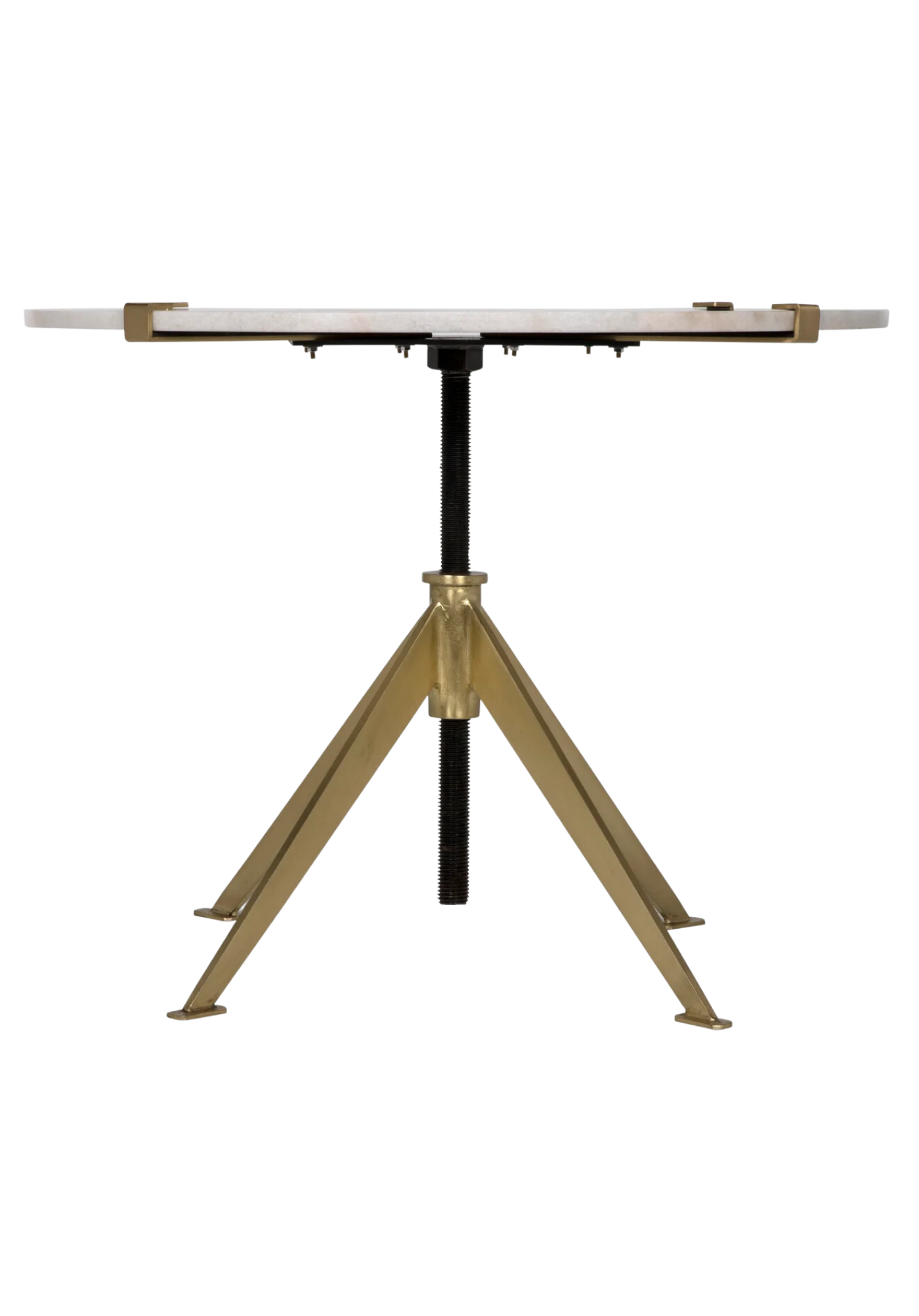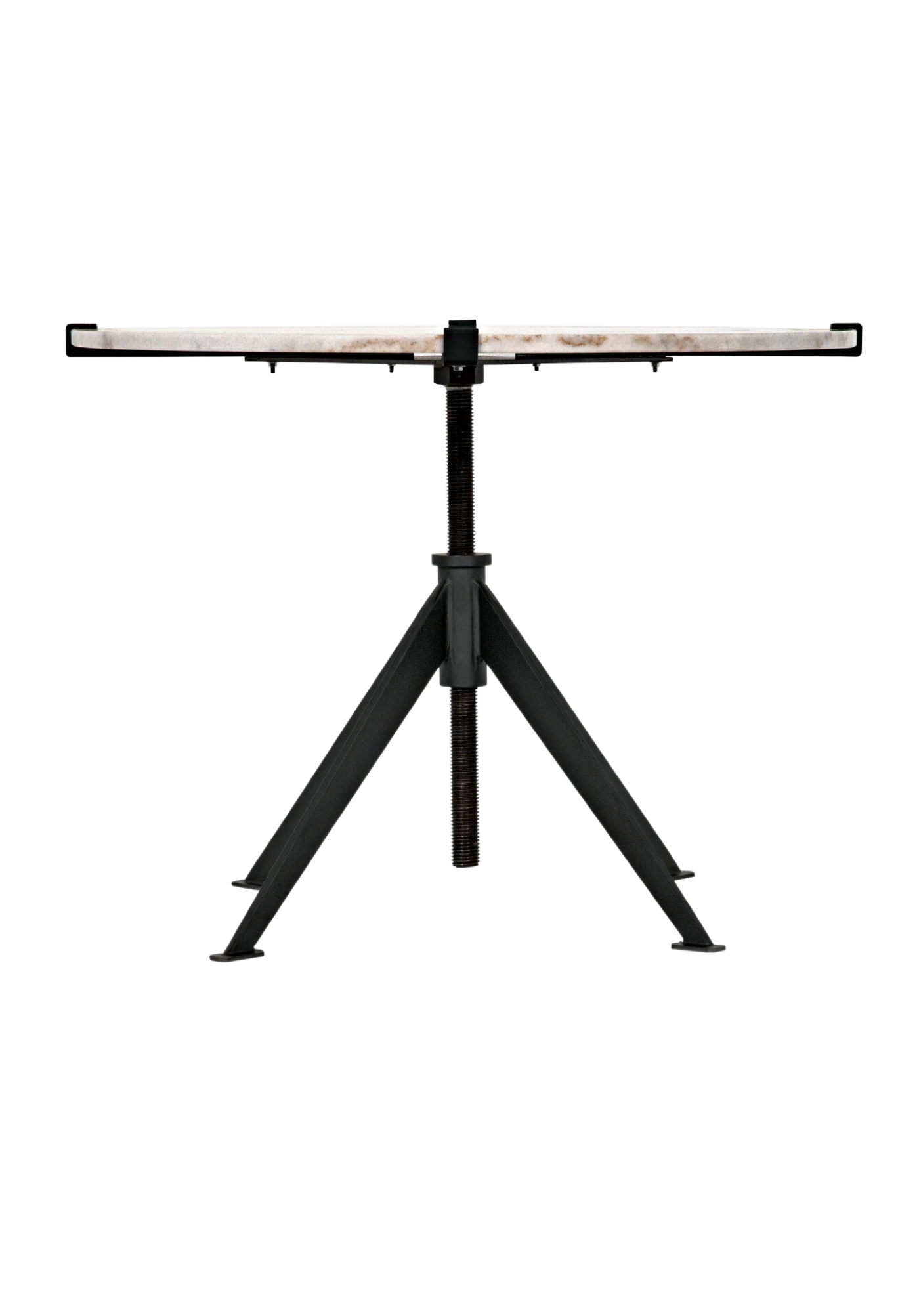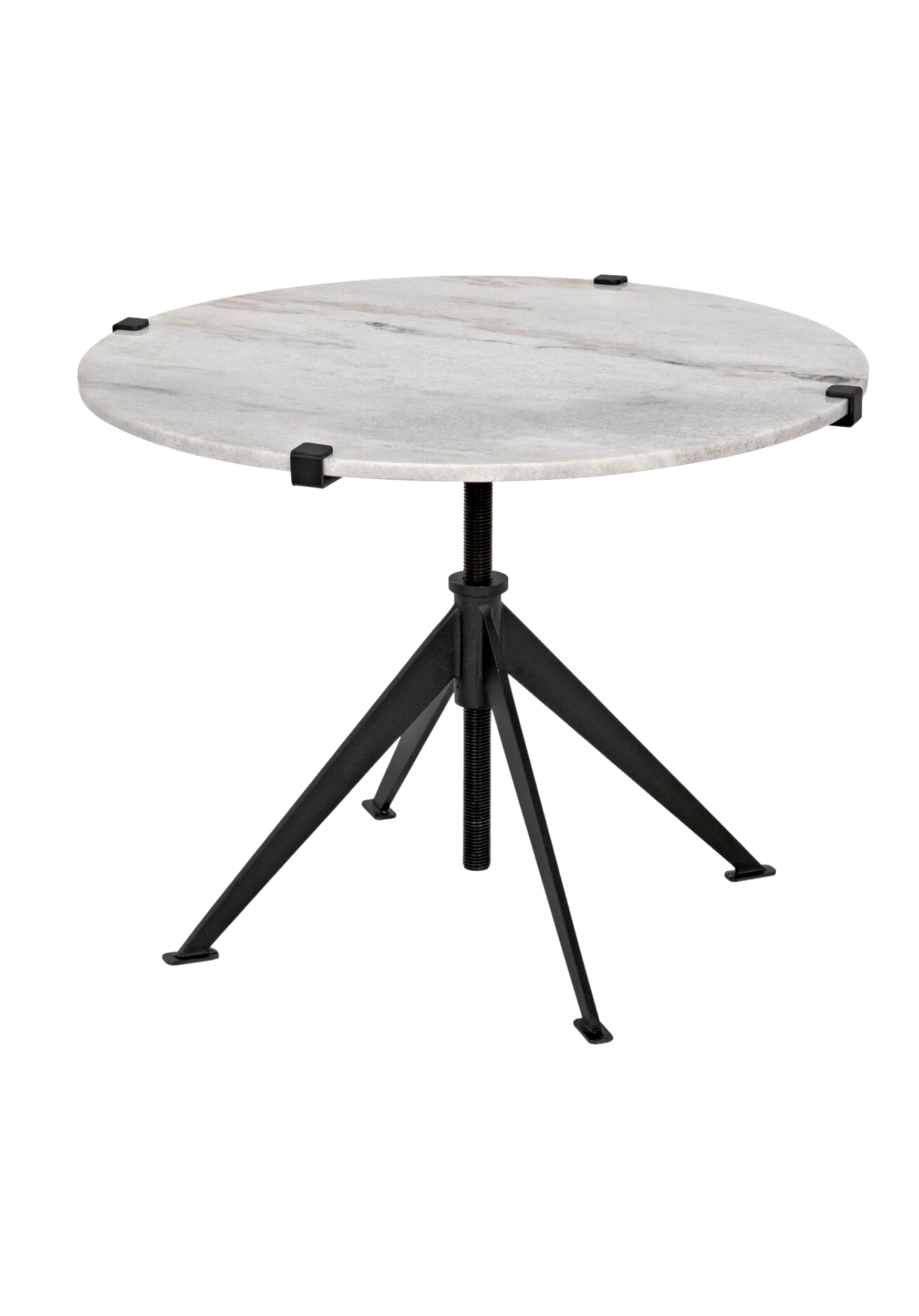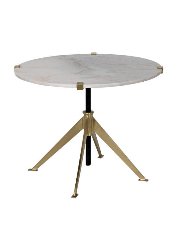 The sleek marble and metal Chloe Adjustable Side Table adds a touch of natural beauty and modern sophistication to any room. Every piece is unique - no two stones will be the same in color, pattern, texture, or veining. The metal frame has a rustic, industrial finish with welded marks and variances in tone and luster.