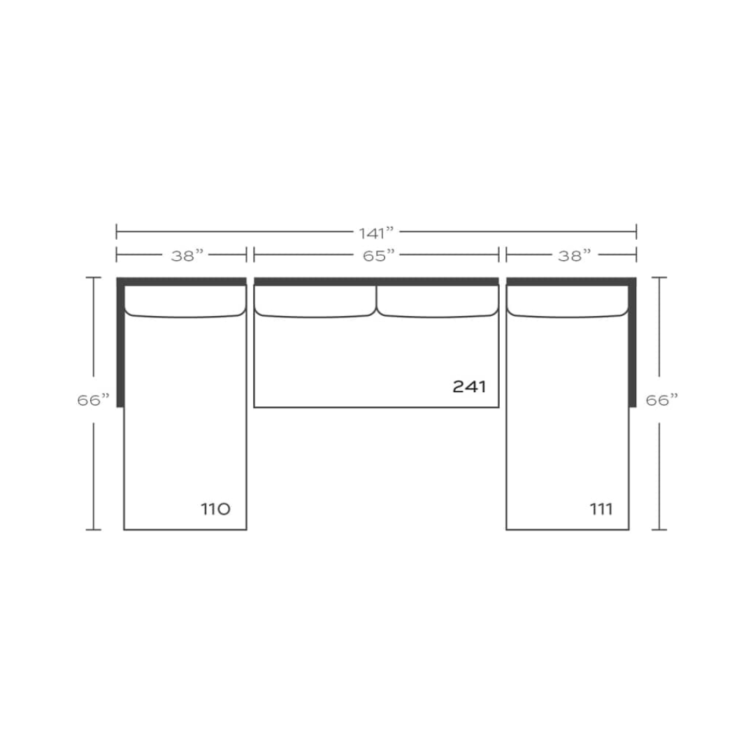 - Overall: 141"L x 66"W x 38"H