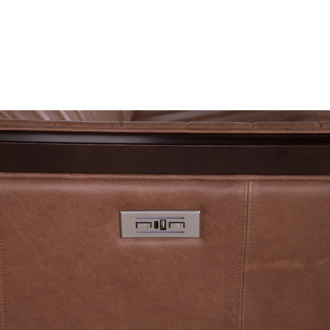 The Townes Power Sofa combines sophisticated design with practical functionality. Upholstered in premium top grain leather, this power recliner features independently adjustable headrest and footrest mechanisms for customized comfort tailored to your preferences. Channel tufting creates visual depth and contemporary appeal, while an integrated USB charging port ensures your devices remain powered throughout the day.Â