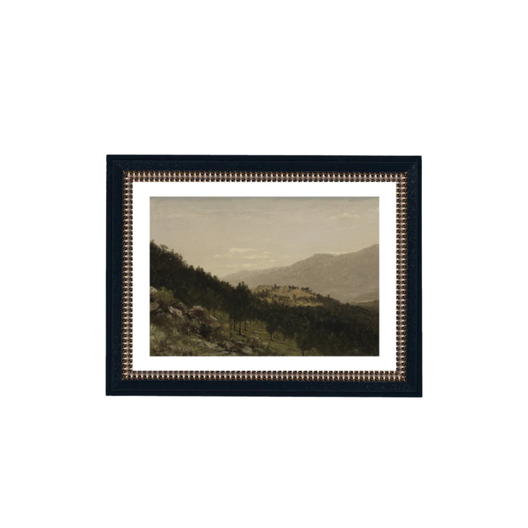 Immerse yourself in the tranquil beauty of Bergen Park, Colorado, with this serene landscape artwork. The soft, natural tones and rolling hills create a peaceful atmosphere, while the gold detailing on the frame lends an elegant, refined touch.