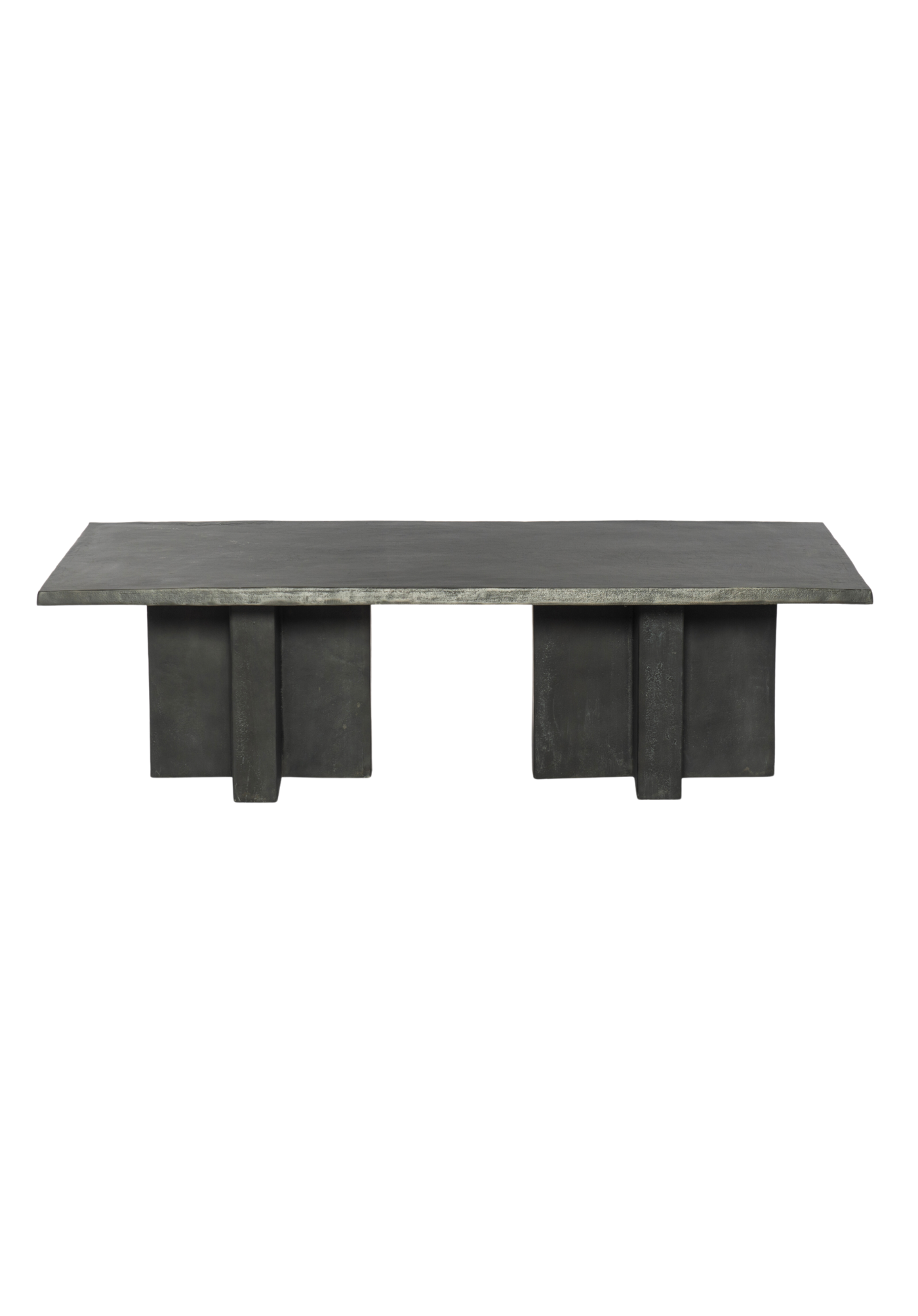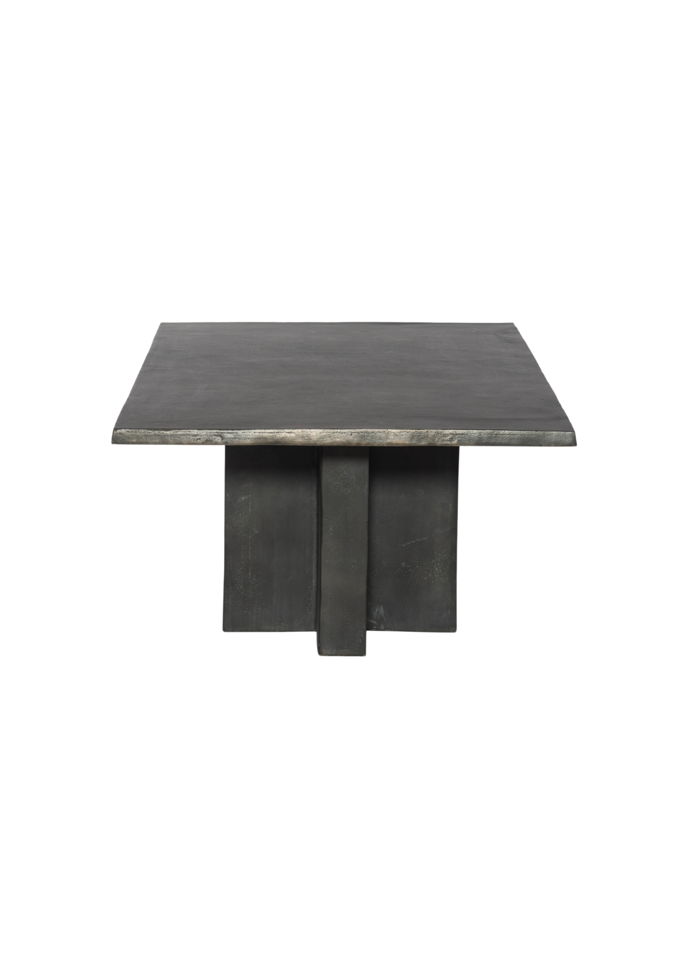 Crafted with raw black cast aluminum, the Sergio Coffee Table features stylishly modern angles and bold lines for an eye-catching look. As a one-of-a-kind piece, it will elevate your outdoor space and make a memorable statement.
