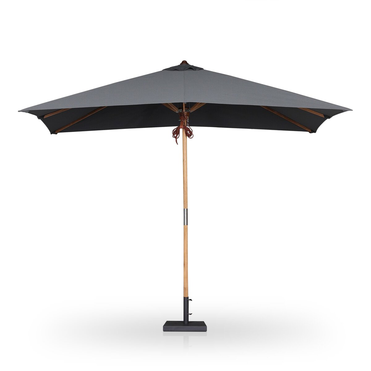 Inspired by 1800s campaign-style design, this Abner Outdoor Umbrella features a collapsible pole and canopy with a pulley system for easy operation. Sophisticated details include leather accents and a woven rope cord. Base sold separately.