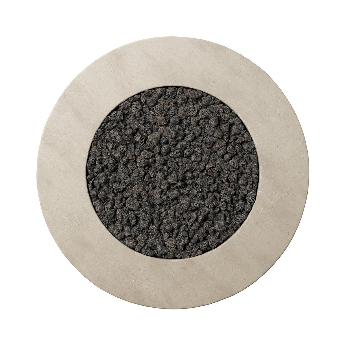 This fire table is perfect for gatherings, featuring a glass-reinforced concrete design and monolithic shape with natural pewter and dark grey tones. Includes lavastones and requires professional installation to connect to natural gas.