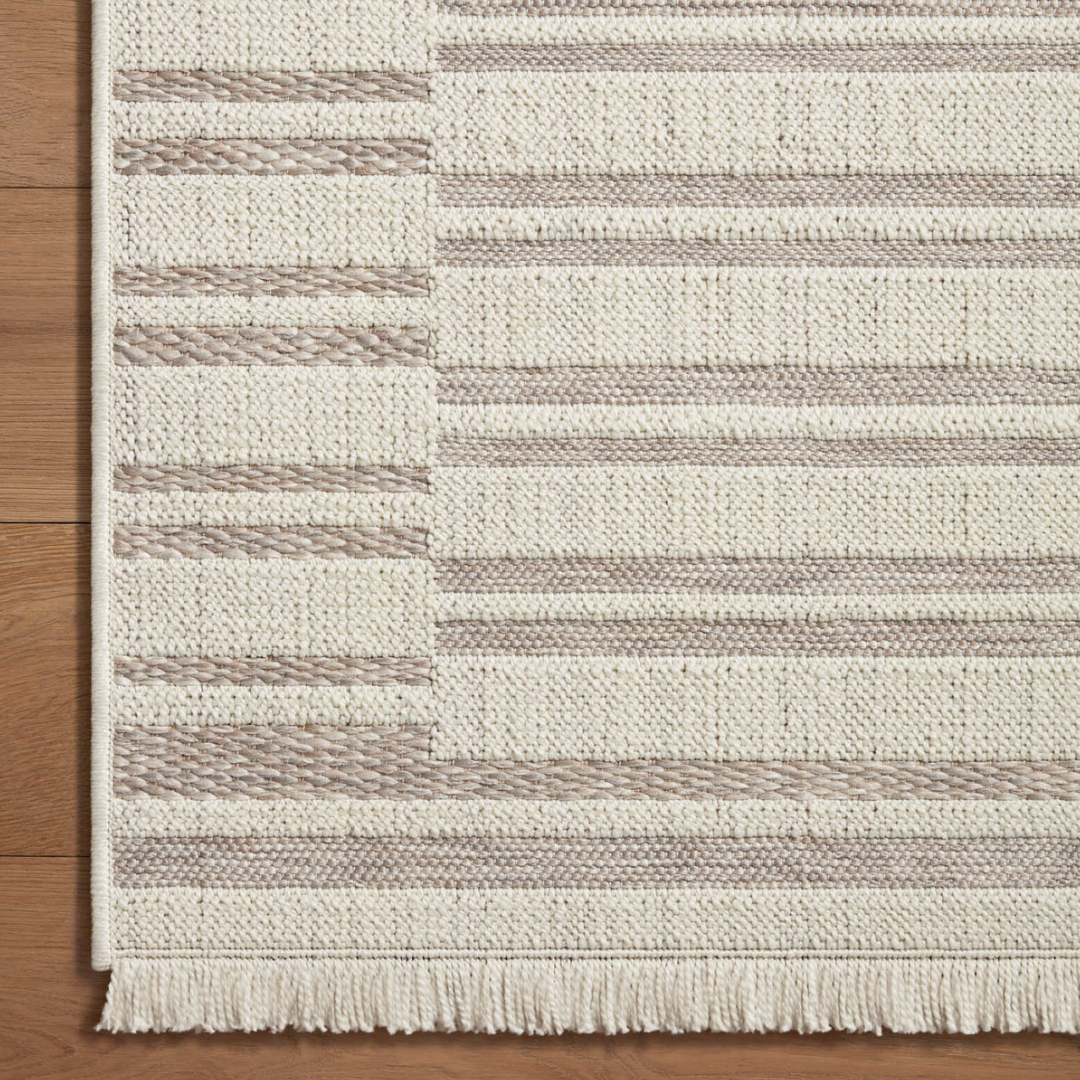 The Malibu Collection is an indoor/outdoor area rug by Amber Lewis x Loloi that channels the casual modern vibe of the beach city it's named after. The rug's neutral-toned geometric prints are easy to match with a range of decor styles, while a hint of fringe adds to the relaxed feel. This collection is power-loomed of 100% polypropylene that's made to resemble natural fibers, but which can withstand the outdoor elements and indoor high-traffic areas like mudrooms, playrooms, and hallways. Spot clean, vacuum, or hose off completely as needed. Made in Egypt and OEKO-TEX certified, ensuring its materials don't contain harmful substances.