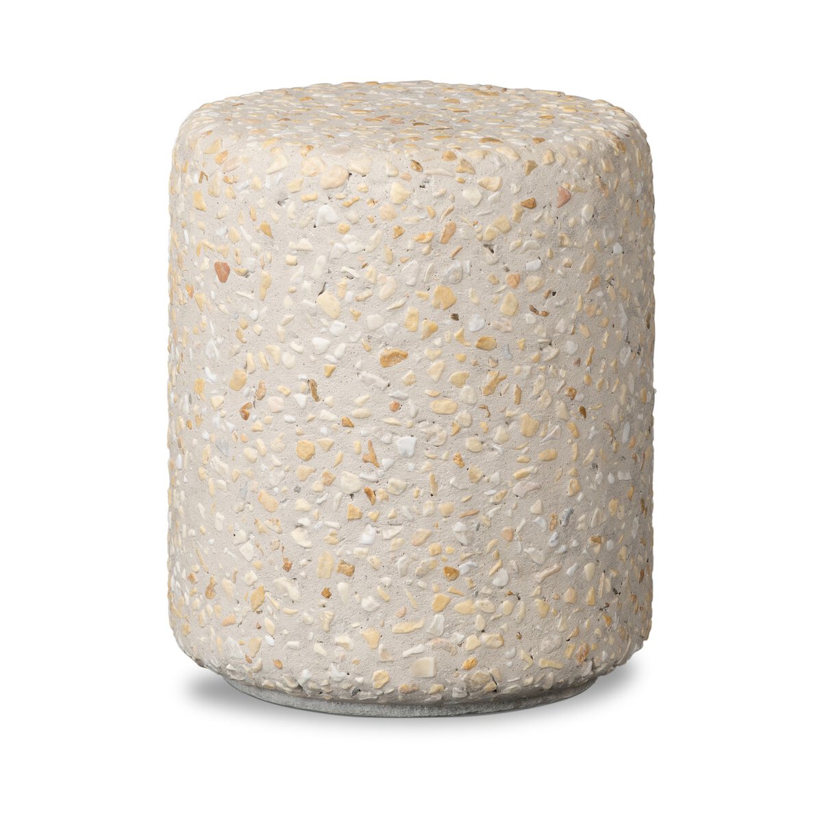 The Obed End Table is crafted with beautiful natural stones that form a neutral terrazzo pattern on a cream base, adding depth and texture to this small-scale piece. Suitable for both indoor and outdoor styling, its compact size and rounded edges make it perfect for layering.