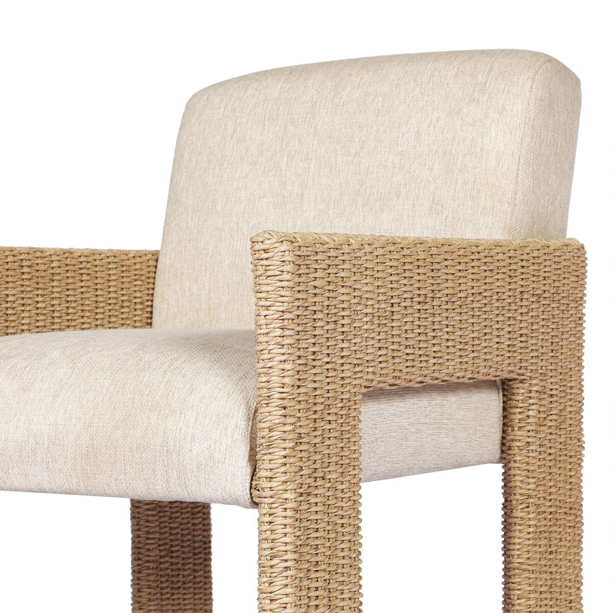 Rethink traditional outdoor dining with the Theresa Outdoor Dining Chair. Featuring a structured, voluminous seating style, this chair combines elegant upholstery with woven legs for a sleek two-tone aesthetic. Enjoy maximum comfort while entertaining outdoors, and remember to store or cover the chair during inclement weather or when not in use.