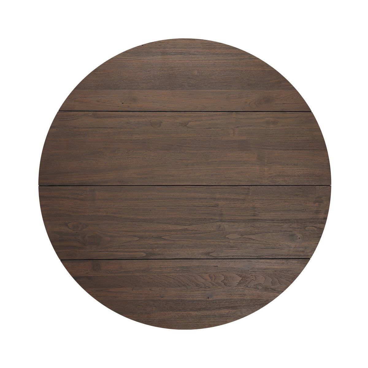 This Round Tobin outdoor coffee table boasts a shape-driven design, with chunky legs and two expansive tiers made from reclaimed woods. Its clean joinery and natural knots and cracks add character to its sculptural form. Cover or store indoors during inclement weather and when not in use for long-lasting durability.