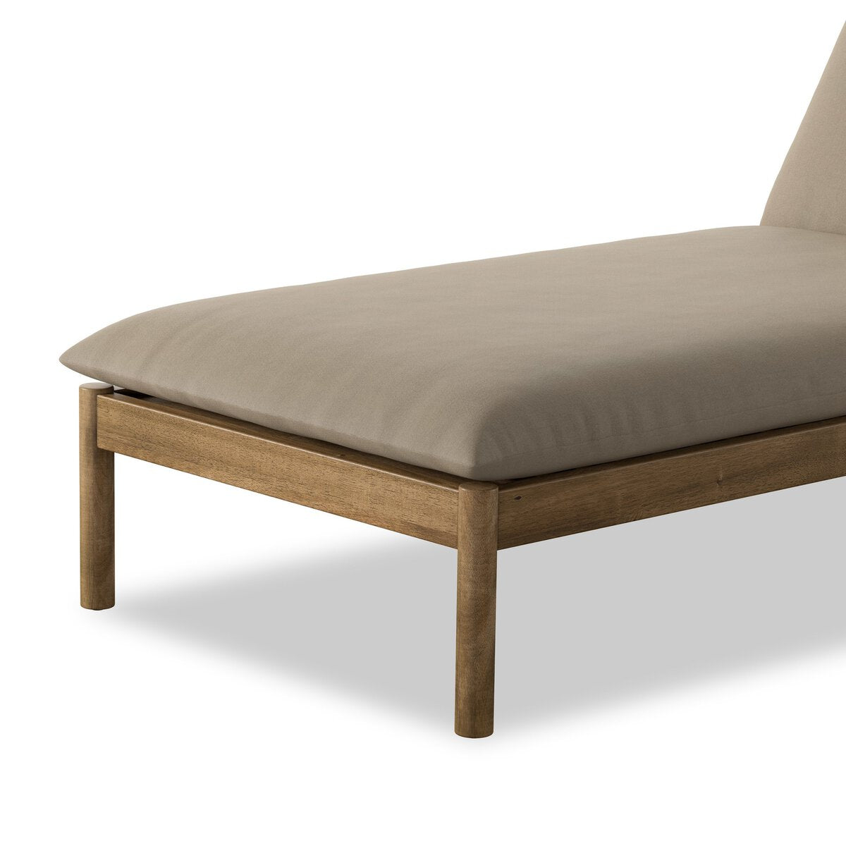 This monochromatic, transitional outdoor chaise lounge showcases a sophisticated blend of mixed materials. Crafted from FSC®-certified acacia and featuring flange-detailed cushioning, it is further enhanced by visually appealing straps across the back. For longevity, cover or store indoors during inclement weather and when not in use.