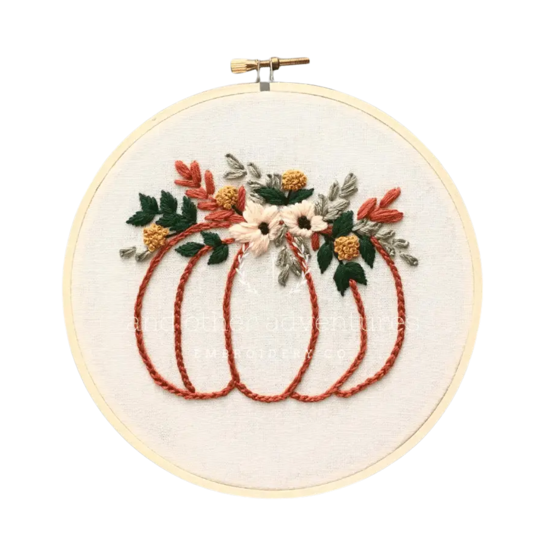Hand Embroidery Kit - Rust Floral Pumpkin