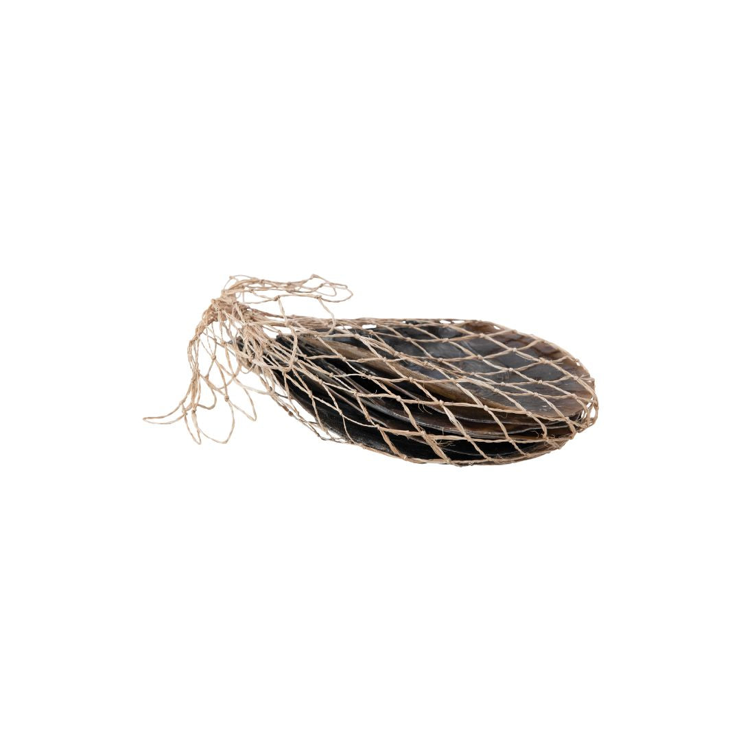 This decorative accent draws inspiration from the coast, featuring genuine pen clam shells with natural variations enclosed in a twine net. The albaca twine net bag holds approximately 17 ounces of authentic pen clam shells. Whether placed on a mantel or incorporated into a tablescape, these glistening shells bring a nautical charm to your decor.