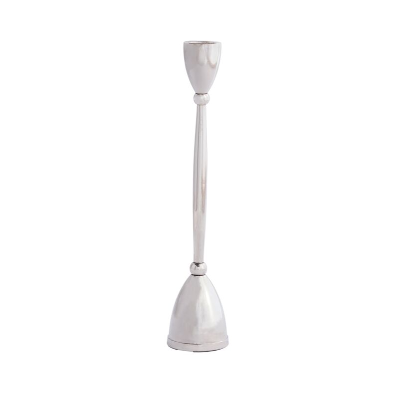 The Silver Hourglass Candlestick Holder boasts a stylish hourglass silhouette, making it a striking addition to any table or mantel. Its polished silver finish enhances its modern appeal, perfect for elevating your home decor.