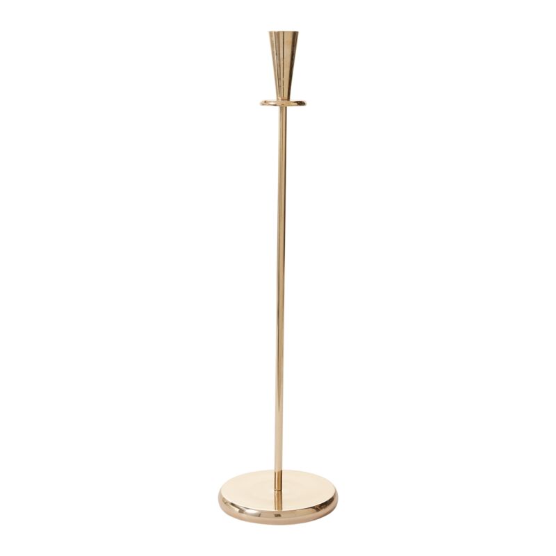 Elevate your table decor with the brass-finished Sleek Gold Candle Holder. This versatile, classic candlestick offers opportunities for height variation, creating a stunning visual effect in any setting.