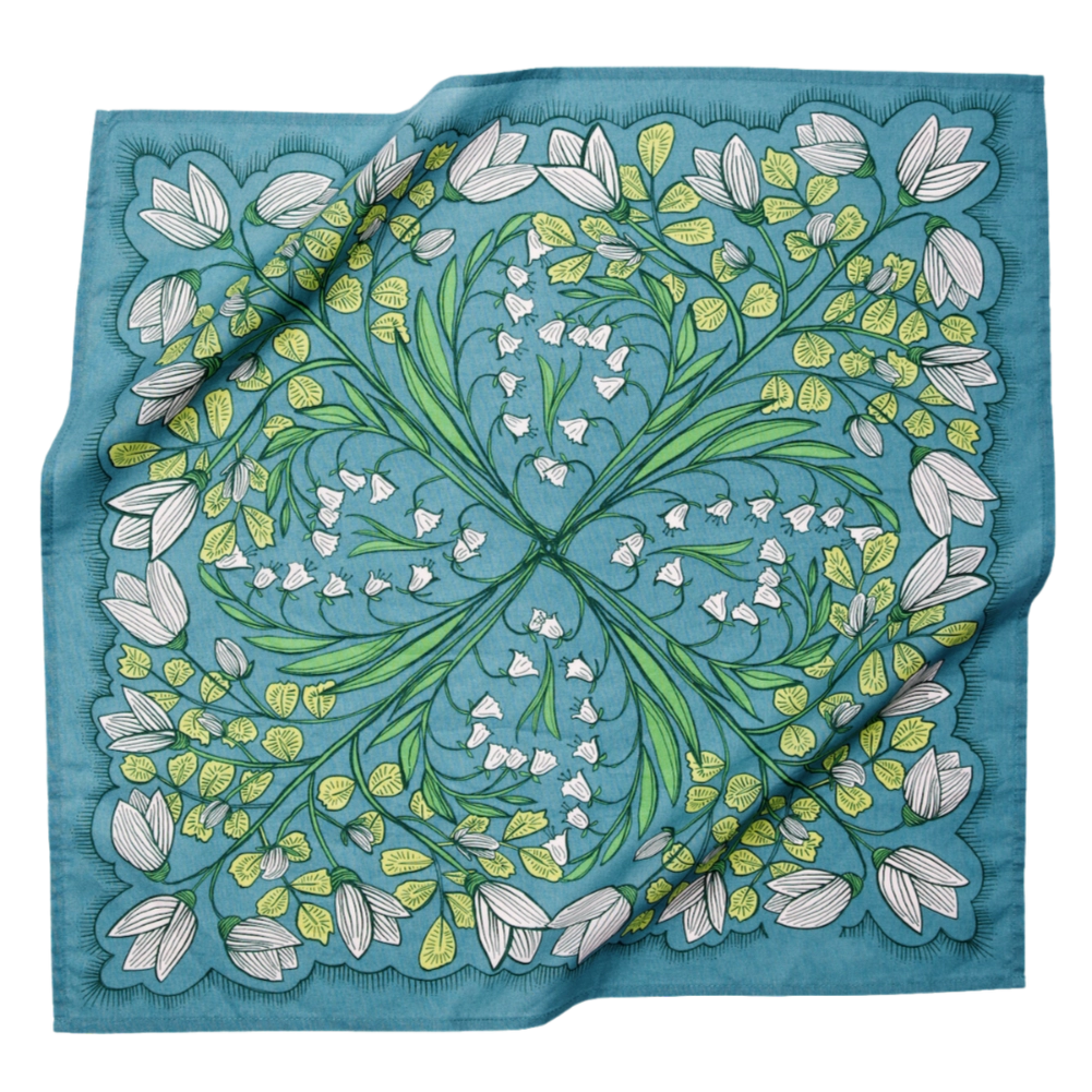 The Cassie Bandana features a vibrant blue background with a white floral pattern, offering a stylish accessory to enhance your hair or outfit with a touch of charm.