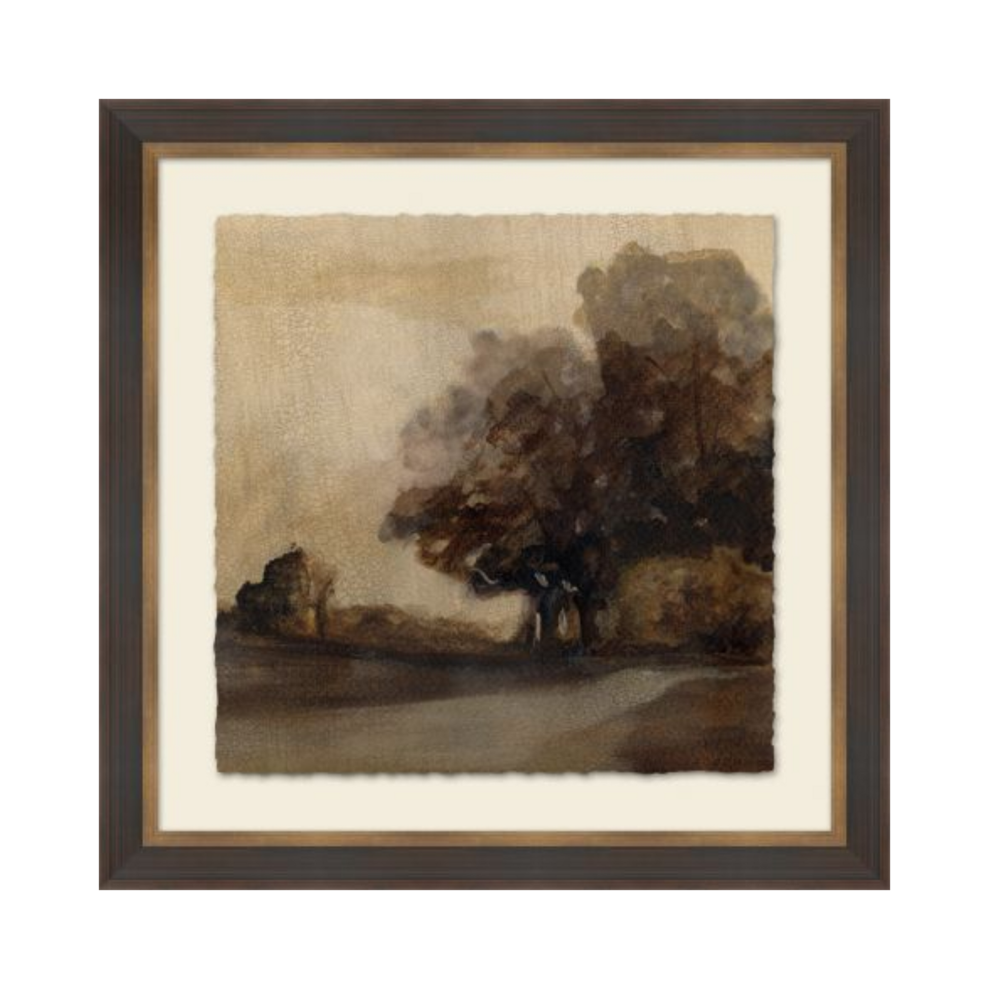 This landscape art piece combines traditional design elements with a modern touch. The crackled finish adds a rustic feel to the scenery, evoking nostalgia and timeless beauty. Perfect for adding a touch of sophistication and warmth to any room.