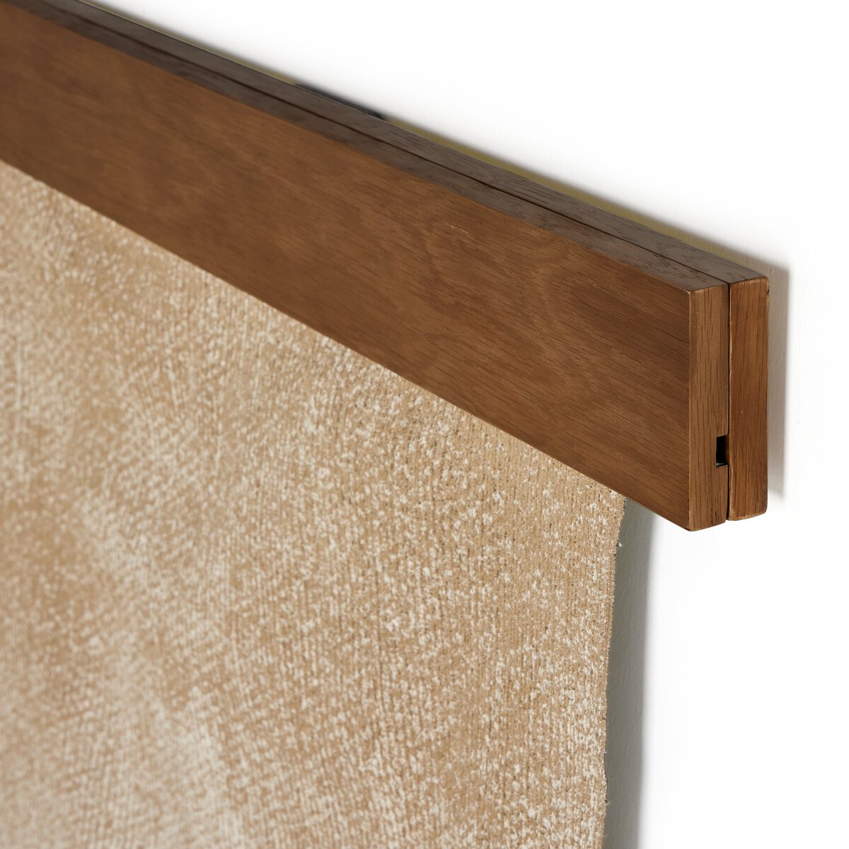 Inspired by the Texas Hill Country, Austin-based artist Aileen Fitzgerald creates atmospheric landscapes reminiscent of early Impressionism and is known as one of her most popular pieces. Handcrafted in Austin, Texas. Made with a poly/cotton blend and featuring thick oak veneer hanging hardware in a light oak finish.