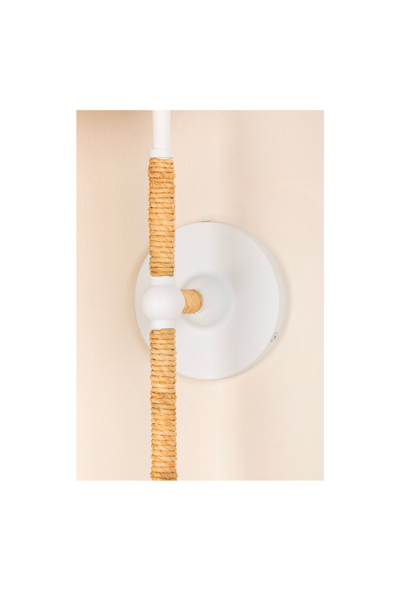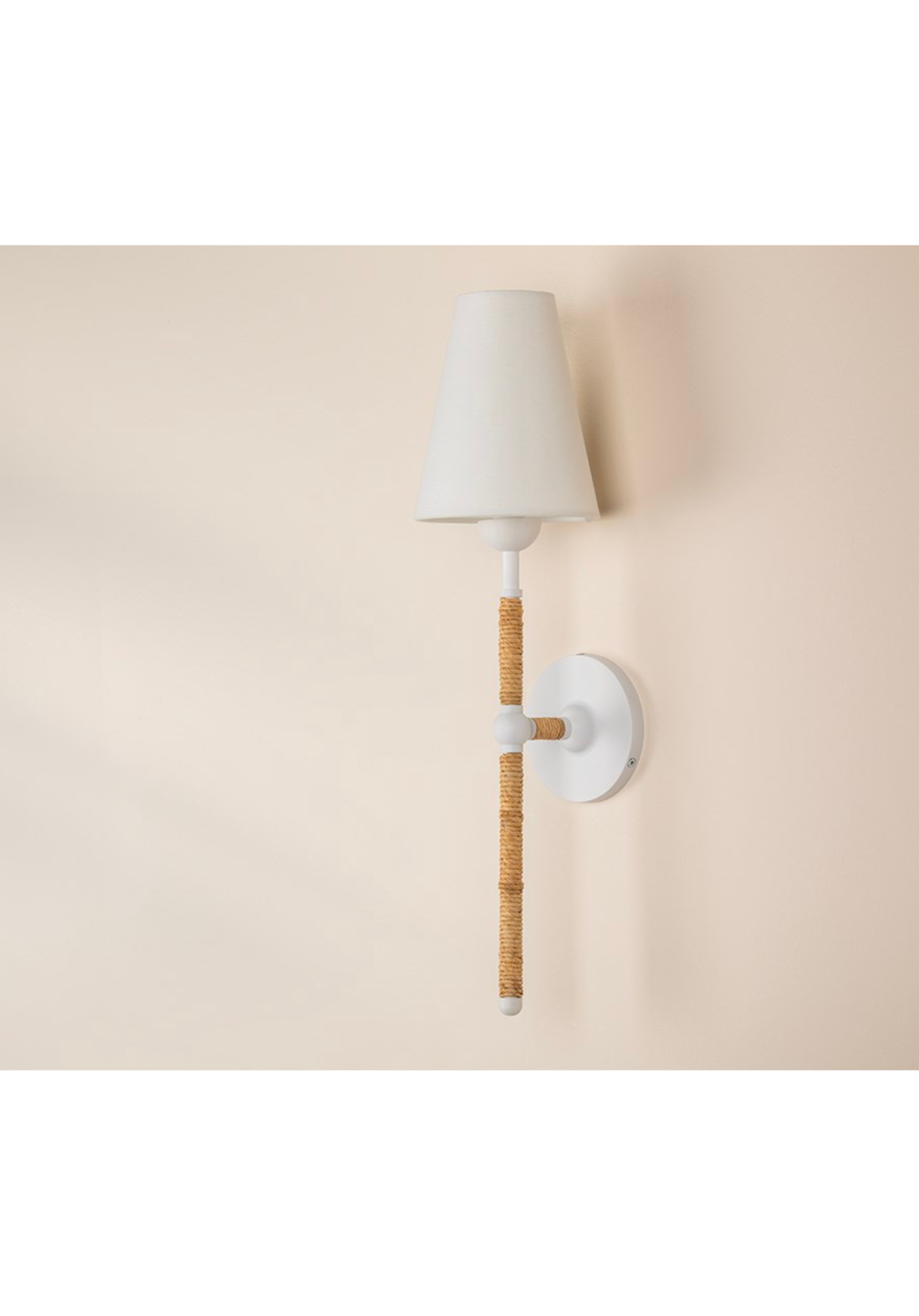 The Norge Sconce features a rattan-wrapped textured white frame, the perfect touch of modern coastal style, and crisp white linen shade, delivering an elegant aesthetic that will surely impress. Create a warm, beautiful atmosphere in any room!