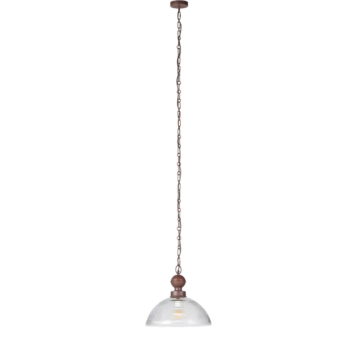 The Belinda Pendant features reeded glass that gives off a traditional feel, complemented by rust-toned antiqued metal on the socket holder and chain for a vintage appearance. Its smaller size makes it ideal for hanging in groups, adding a touch of elegance to any space.