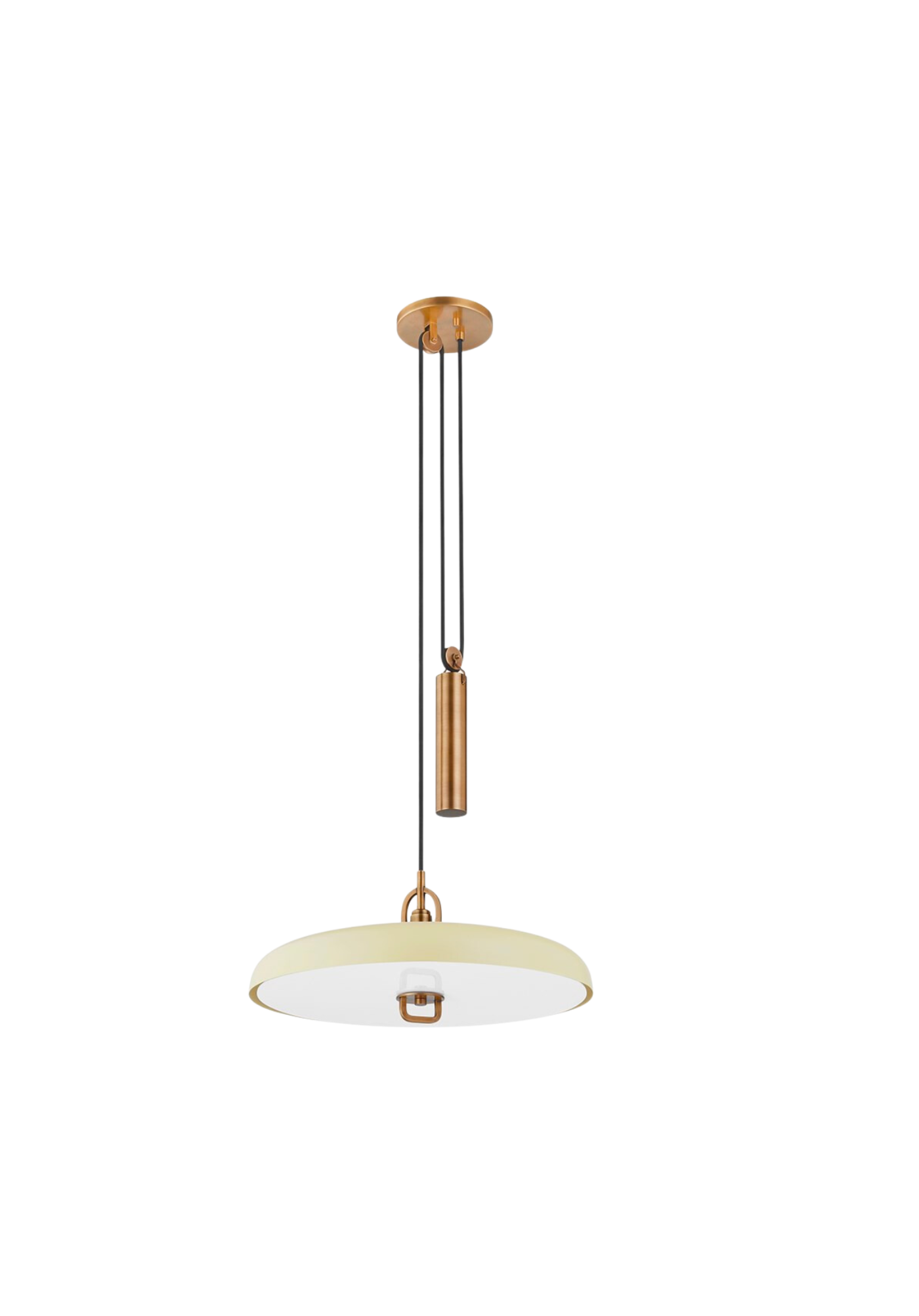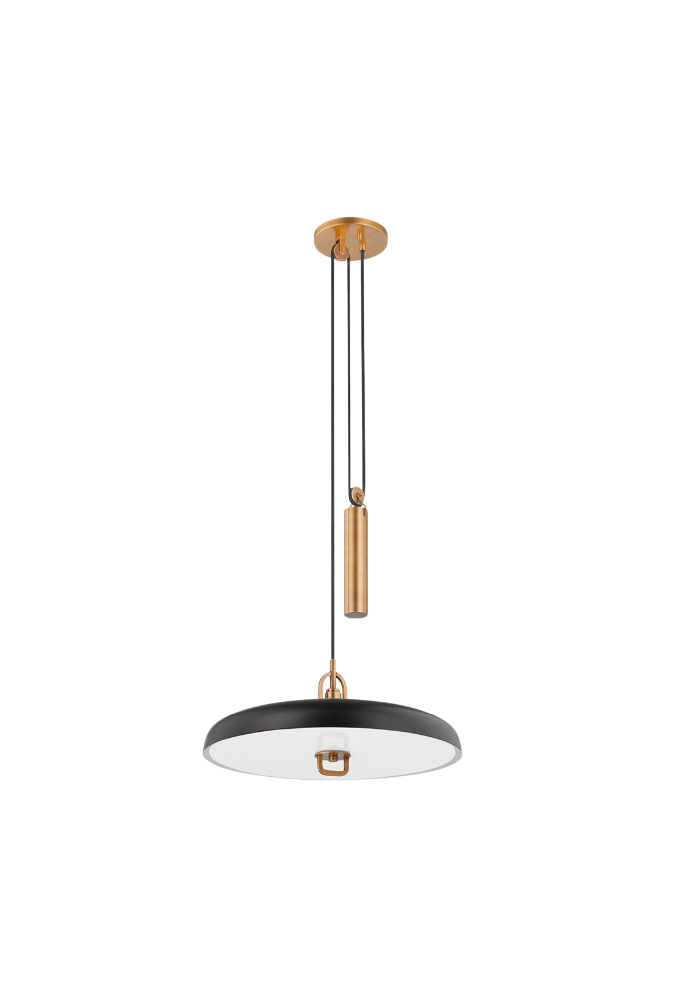 Introducing the Hendrix Pendant! For a timeless look with modern appeal, this pendant will be the perfect addition to any interior. The Patina Brass pulley adds a striking touch to the design and serves an adjustable purpose, while the Soft Black or Soft Sand shade paired with a matte white acrylic diffuser creates a fresh, inviting atmosphere. Let the Hendrix Pendant bring a touch of class to your environment!