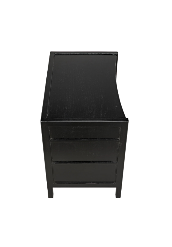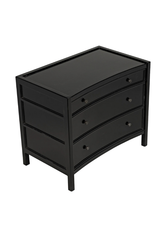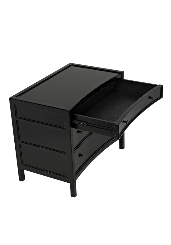 Elevate your bedroom with the striking ebony Maine Nightstand. Its dark hand-rubbed finish gives a dramatic look and is perfect for your bedside. Its timeless design proves that style never fades.