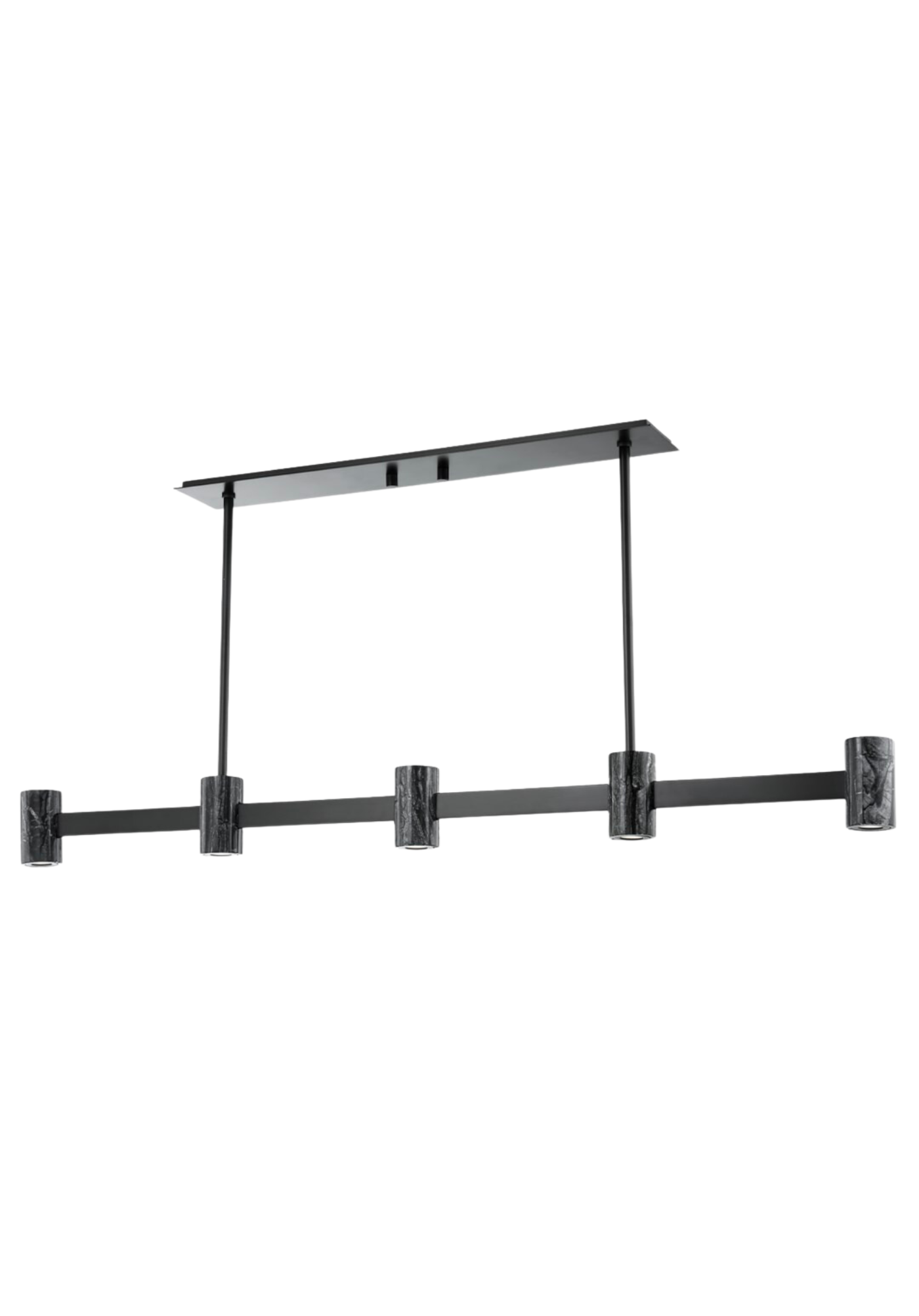 Bring contemporary elegance to your home with the Marcus Linear Chandelier. Crafted from black brass and finished with dark marble details, this stunning chandelier adds a classic flair to any room. Illuminate your home with modern luxury and style!