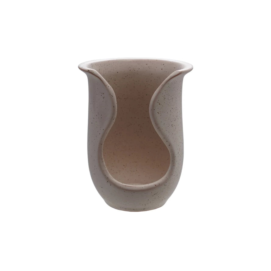 This stoneware spoon holder offers a practical and stylish way to keep countertops clean while cooking. Its open design cradles utensils neatly, while the speckled glaze and organic shape add warmth to the kitchen. A functional piece that blends everyday convenience with a crafted, timeless appeal.