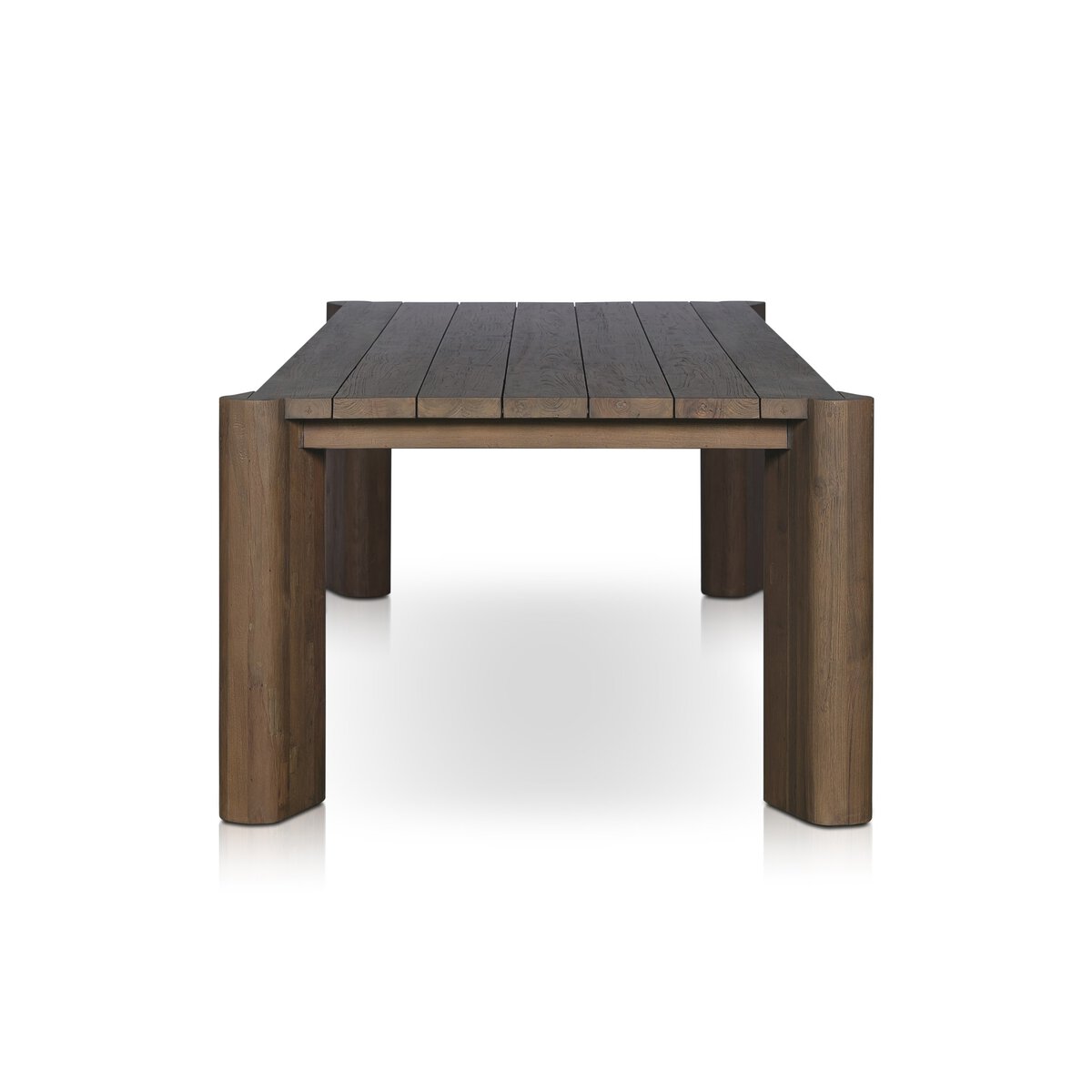The Sylvia Outdoor Dining Table features a strong, organic design with reclaimed wood and a heritage brown finish. Featuring a sleek, simple design, the Sylvia Outdoor Dining Table adds a stylish statement to any outdoor space.
